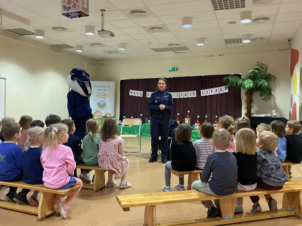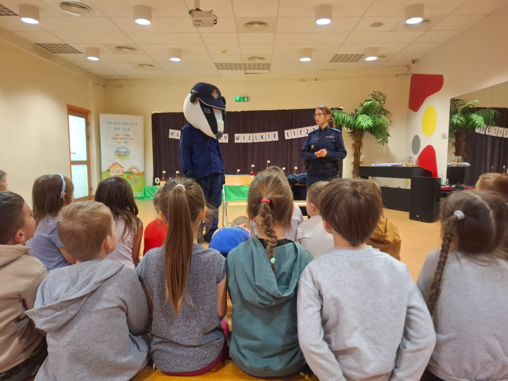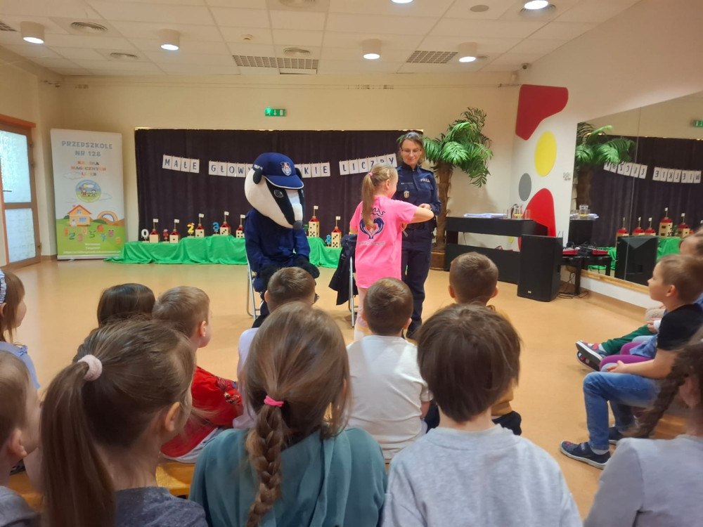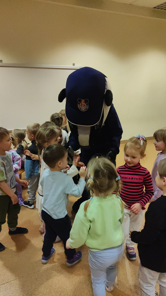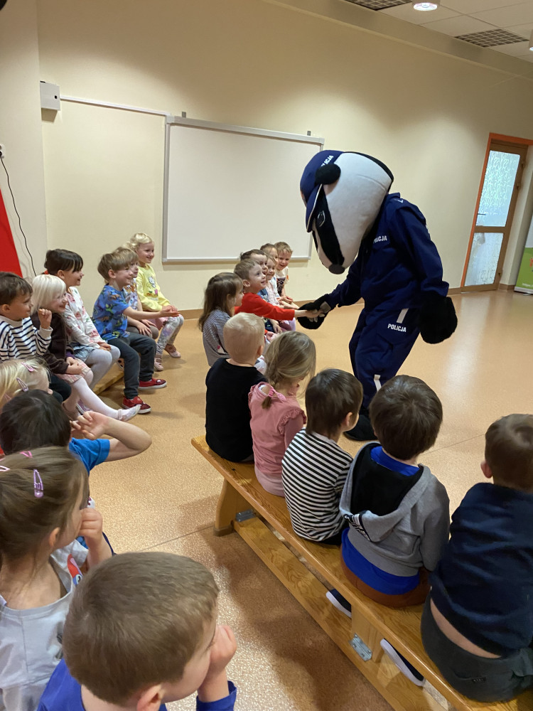 Sierżant Borsuk to oficjalna maskotka Komendy Stołecznej Policji, która aktywnie uczestniczy w działaniach edukacyjnych uczy najmłodszych zasad bezpieczeństwa, m.in. w ruchu drogowym, oraz oswaja z pracą policjantów. Jest popularnym gościem w przedszkolach i szkołach, promując akcję „Z Borsukiem Bezpieczniej". Dziękujemy za odwiedziny naszego przedszkola!