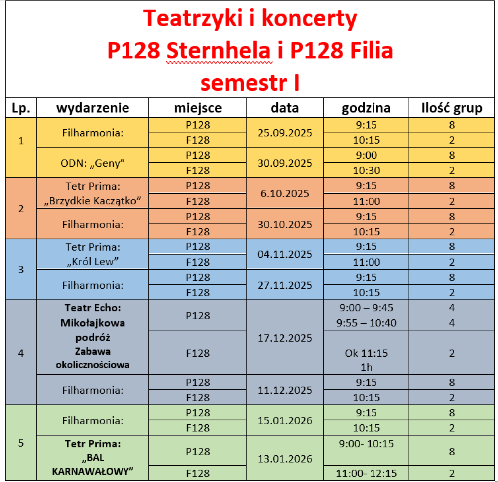 Teatrzyki i koncerty P128 Sternhela i P128 Filia semestr I |