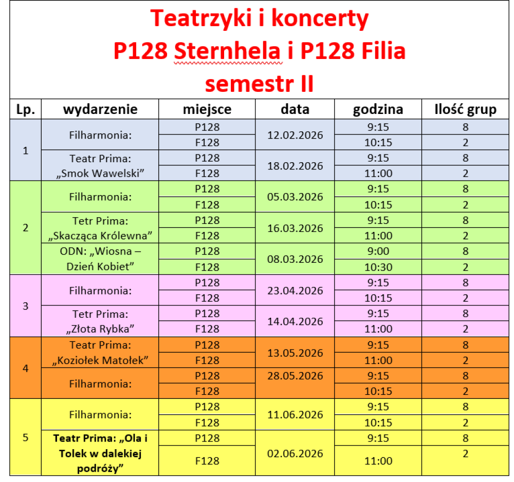 Teatrzyki i koncerty P128 Sternhela i P128 Filia semestr II |